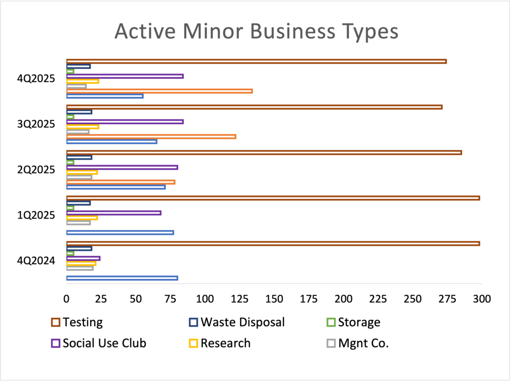 The minor license categories, those with fewer than 300 active licenses nationally, provide a window into emerging trends and niche markets. Activity here was mixed in 2025, with new concepts showing strong growth while older, more traditional support sectors declined.