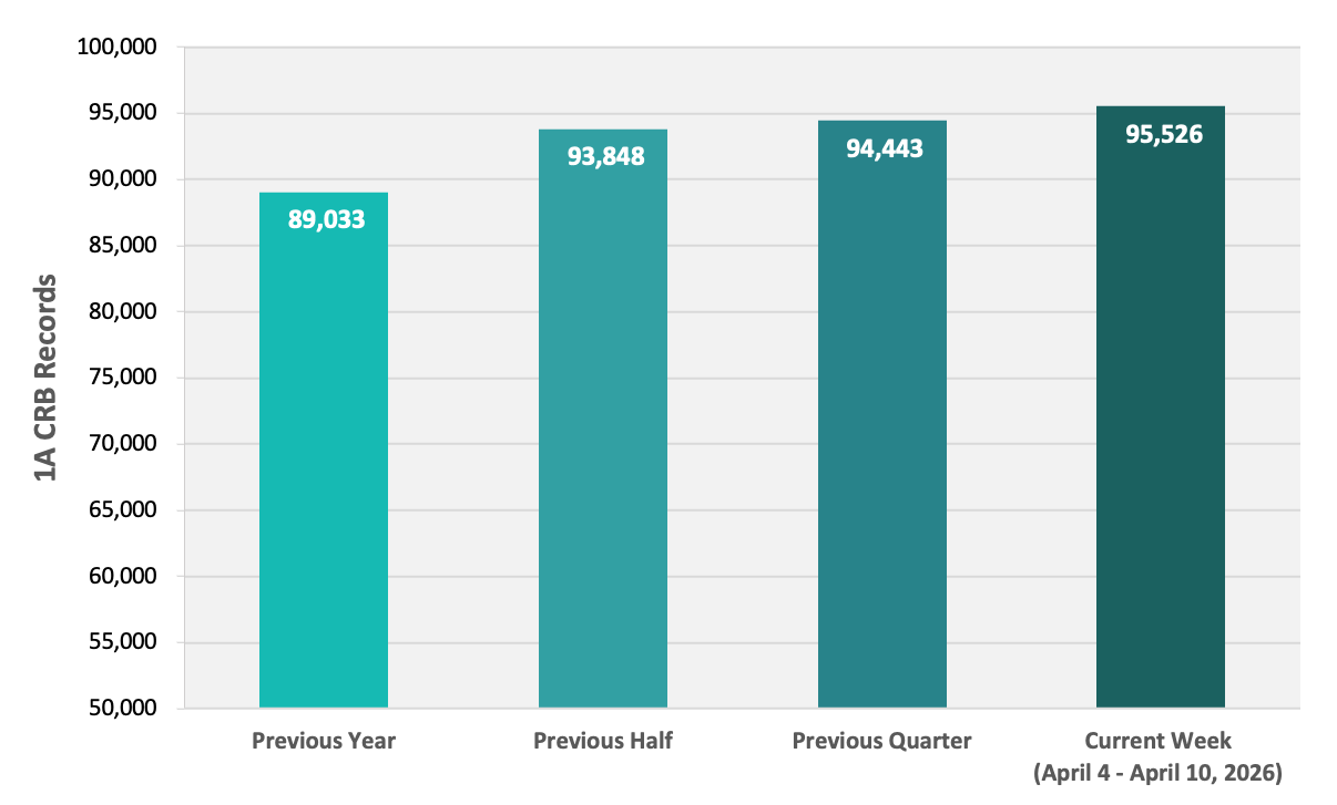 Tier 1 Cannabis-Related Business records: 95,206 1A CRBs + 5,211 1B CRBs = 100,417 total