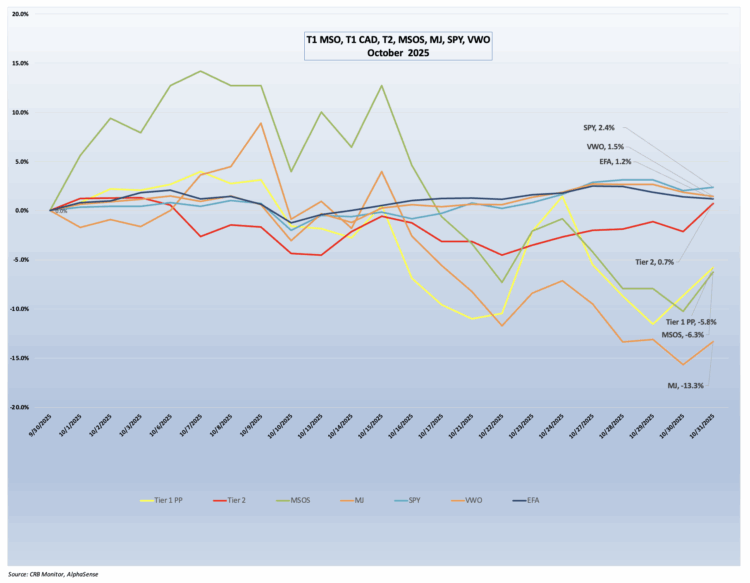In October 2025, cannabis equities ended the month with a fizzle, with no continued support for the rally that we saw at the end of September. This should have been no surprise to investors given the ongoing government shutdown. So while crickets chirped in Washington, cannabis stocks languished without any good news to prop them up this time around.