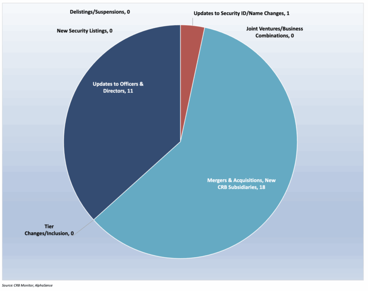 As we have done for more than half a decade, the CRB Monitor research team covers the cannabis news cycle daily. Our goal is to remain up-to-date on all the relevant information vital to the ongoing breadth, depth, and accuracy of our data in the CRB Monitor securities database. And while the cannabis industry has faced major regulatory obstacles over those years, there has never been a shortage of news as licensed CRBs’ operations evolve to survive in a complicated business and regulatory environment.