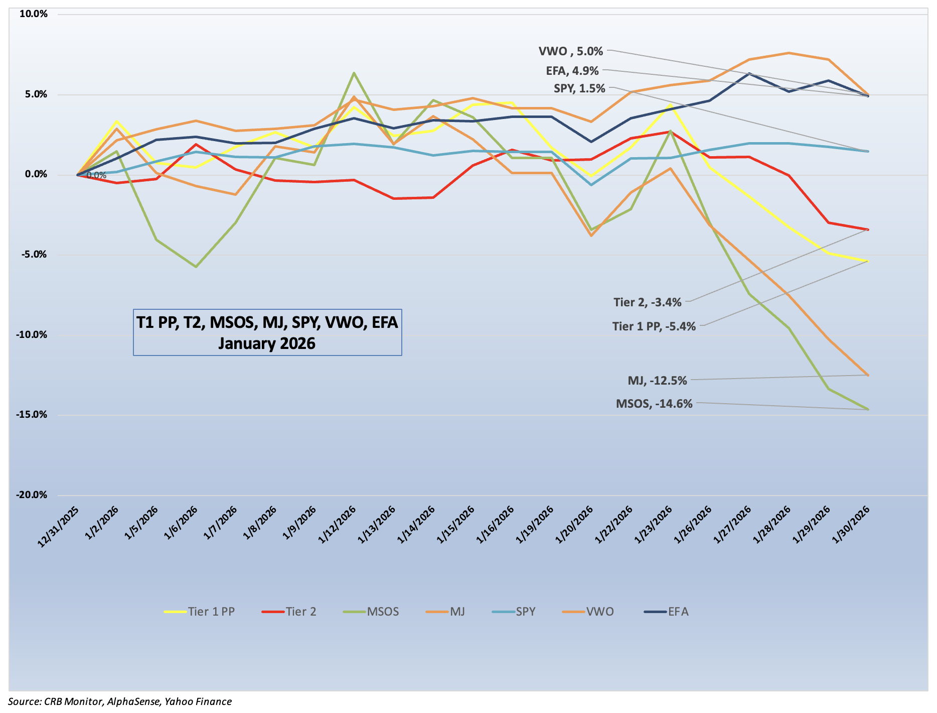 Once again, cannabis-related equities began 2026 with weakness, extending CRBs’ multi-year underperformance relative to global, broad market indexes. Cannabis-themed... Read more.
